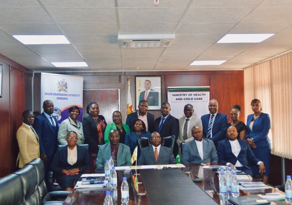 Back row from left to right:  Mr H. Nyamutswa (representing Mr T. Parayiwa),, Mr P.N. Chivunga, Ms N. Dube, Mrs R. Mpofu, Dr. M. Mushunje, Prof H. Zirima, Mr G. Karani, Prof D. Tagwireyi, Adv. T. Magwaliba,  Dr.  J. Mutede, Ms I. Mariko, HPA Secretary General Mrs C. Chimbwanda.